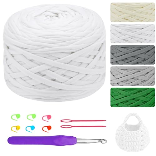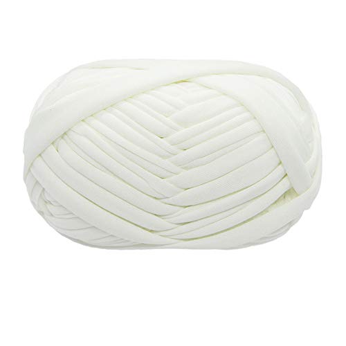 400 g/100 m T-shirt, garn, textilgarn för virkning, T-shirt, garn för stickning och virkning, T-shirt, garn för virkning för väskor, korgar, mattor, vägghängning, gör-det-själv-hantverk – vit