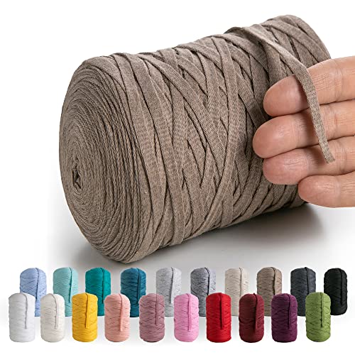 Binwat T-shirt garn för virkning 150 m elastiskt bandgarn tjockt virkat tyggarn, stickning t-shirt garn för virkad väska/filt/korg, gör-det-själv-hantverksprojekt, heminredning (kaffe)