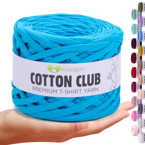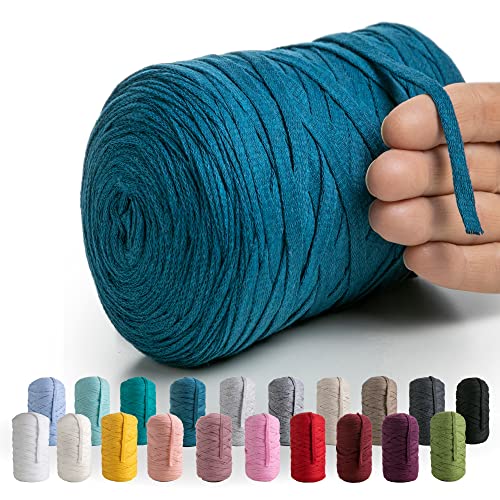 MeriWoolArt® Premium T-Shirt Garn Turkos, 100% Kvalitetsbomullssnöre för Stickning, 10 mm x 110 m Textilgarn, Makramésnöre för Hantverk Virkning Fläta Vägghängning Presentinslagning Snöre