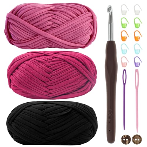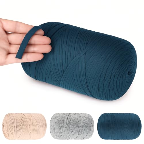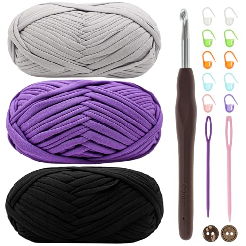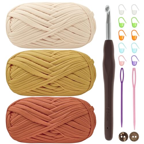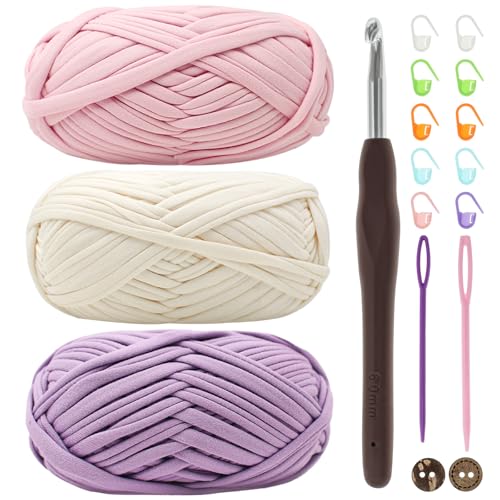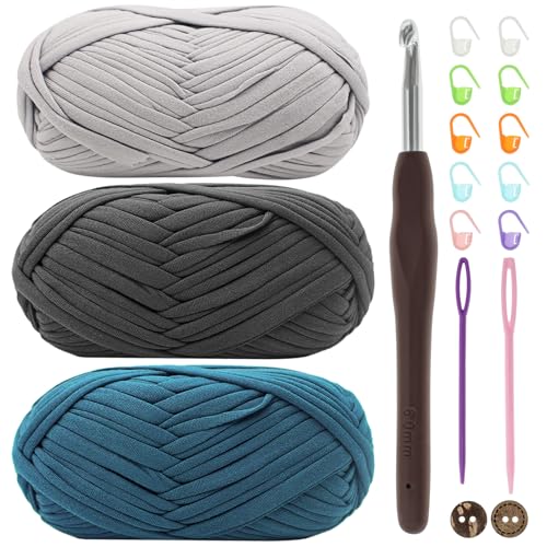 Renyiz t-shirt-garn för virkning, virkgarn, 3 x 100 g tjockt garn för virkning, tjockt virkat tyggarn med 6 mm virknål, stickat t-shirt-garn för virkad väska, filt, korg, gör-det-själv-projekt