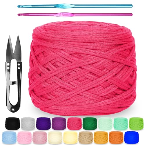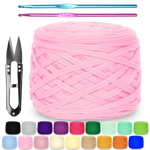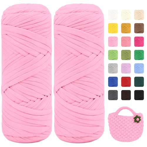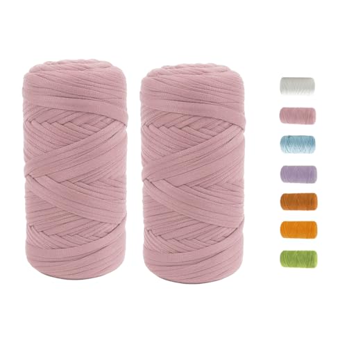 T-shirt-garn för virkning 2 x 100 g tjockt virkgarn med 6 mm virknål, perfekt för virkningsprojekt – nybörjare – elastiskt tyg för gör-det-själv-hantverk (rosa)
