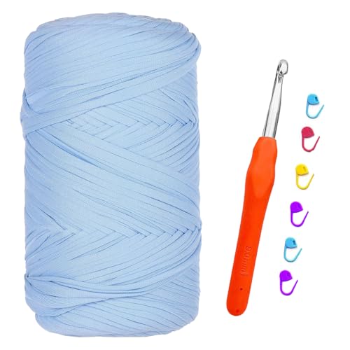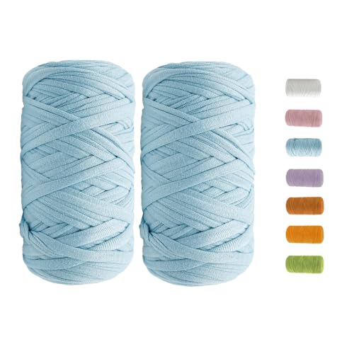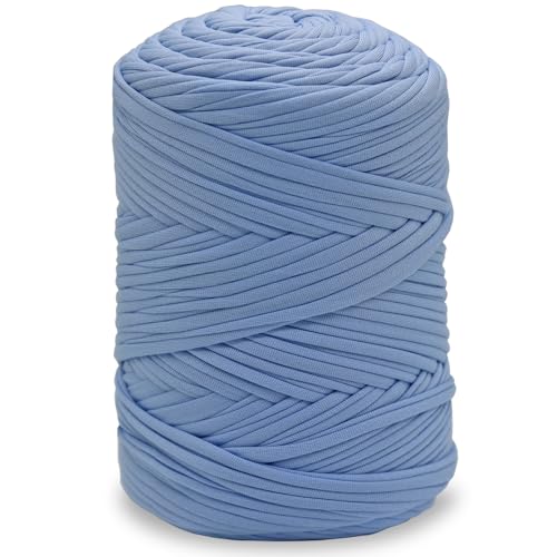T-shirt garn, 400 G/120 m t-shirt garn för virkning, textilgarn med 9,0 mm virknål, tjock tjocklek för väskor virkning, korgar, mattor, hantverk (ljusblå)