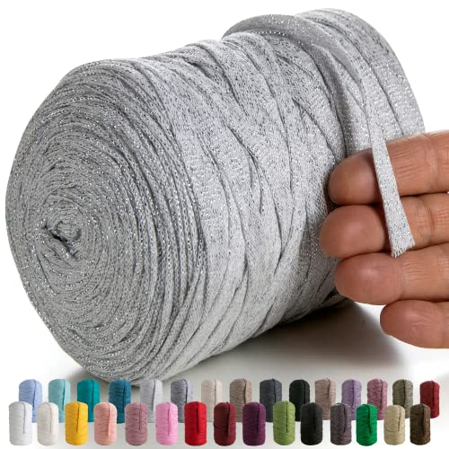 MeriWoolArt® Premium T-Shirt Garn Ljusgrå, 100% Kvalitetsbomullssnöre för Stickning, 10 mm x 110 m Textilgarn, Makramésnöre för Hantverk Virkning Fläta Vägghängning Presentinslagning Snöre