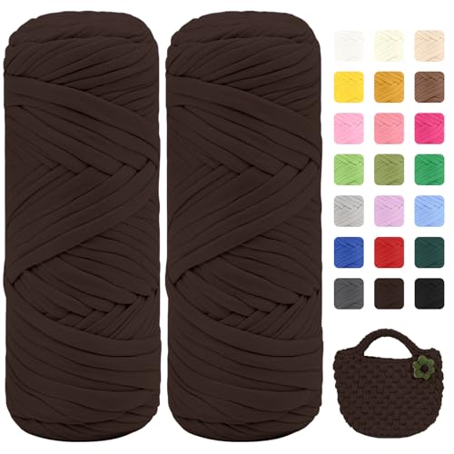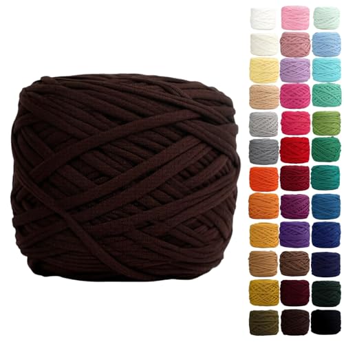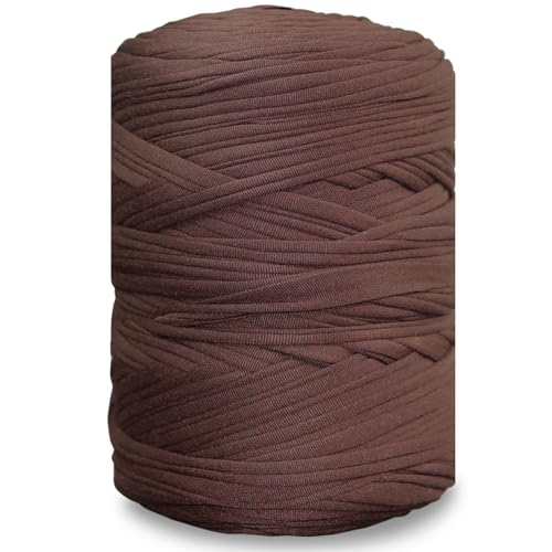 Notionsland T-shirt-garn, 400 g, stickgarn, tyg, virkgarn för väskor, korgar, filtar, heminredning – choklad, enfärgat garn