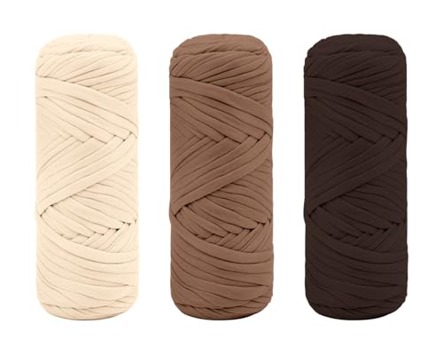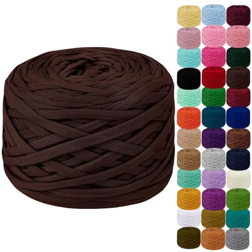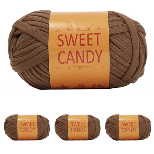 Yixinly 400 g T-shirt-garn för virkning – slanggarn för väska, korg, tak, heminredning – 4 x 100 g (brun)