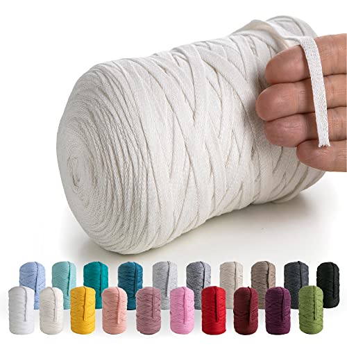 MeriWoolArt® Premium T-Shirt Garn Hud, 100% Kvalitetsbomullssnöre för Stickning, 10 mm x 110 m Textilgarn, Makramésnöre för Hantverk Virkning Fläta Vägghängning Presentinslagning Snöre