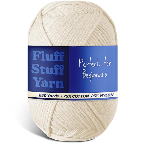 Mjukt garn för virkning – virknings- och stickgarn, nybörjargarn med lätt-att se stygn, 250 Yds Amigurumi-garn, bomull-nylonblandning t-shirt garn för virkning, kamgarn i kamgarn 4, gräddgarn