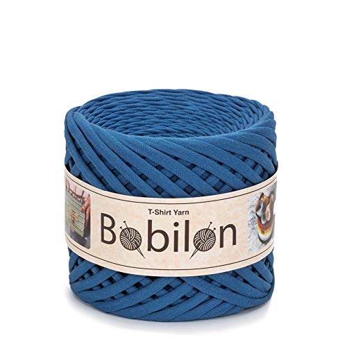 T-Shirt garn Fettuci Zpagetti boll, 3-5 mm T-skjorta garn för virkning stickning, mask öronband, T-garn ekologisk bomull, makramé T-garn, jerseygarn - blå jeans