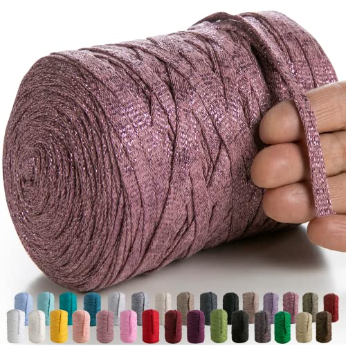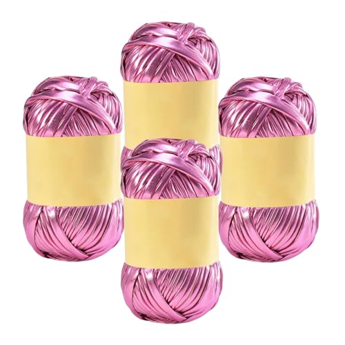 Metalliskt T-shirt Garn för Virkning och Stickning - Glänsande Tjockt Garn för Gör-det-själv-väska, Filt, Kudde Projekt - Rosa
