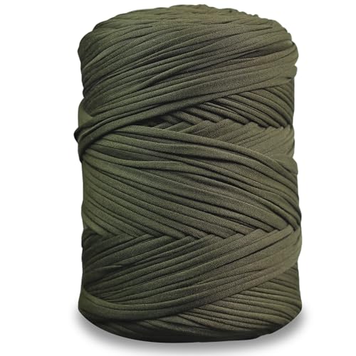 Notionsland T-shirt-garn, 400 g, stickgarn, tyg, virkgarn för väskor, korgar, filtar, heminredning – olivgrönt, enfärgat garn