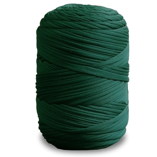 NOTIONSLAND 400 g T-shirt-garn, stickgarn, tyg, virkgarn för väska, korg, filt, heminredning – skogsgrönt enfärgat garn