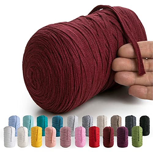 MeriWoolArt® Premium T-Shirt Garn Benetton, 100% Kvalitetsbomullssnöre för Stickning, 10 mm x 110 m Textilgarn, Makramésnöre för Hantverk Virkning Fläta Vägghängning Presentinslagning Snöre