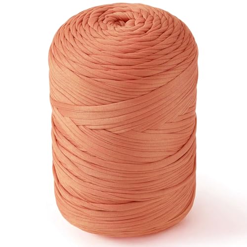 NOTIONSLAND 400 g T-shirt-garn, stickgarn, tyg, virkgarn för väska, korg, filt, heminredning – persikopuder monofärgat garn