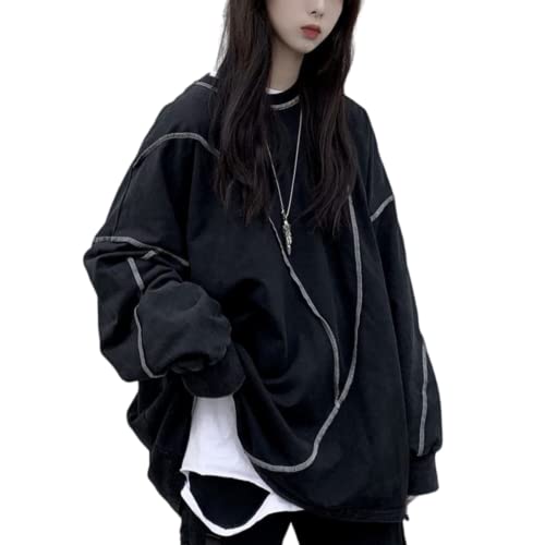 Dam Y2K mörk Academia koreansk sweatshirt gotisk Harajuku Emo Alt överdimensionerad långärmad topp punk grunge streetwear t-shirt, Svart, XL
