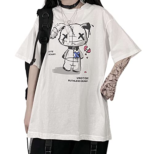 Hewlshawn Dam grunge T-shirt gotiska björn toppar tryck Harajuku koreanska kläder, Vitt, XL