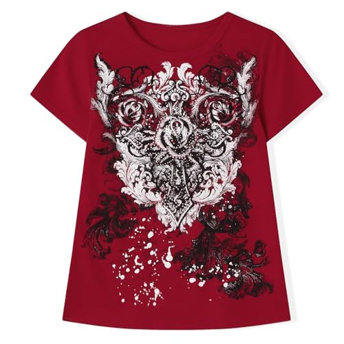 Gotiska grafiska grunge-t-shirts för kvinnor och tonårsflickor, emokläder i vintagestil, kortärmad fairy grunge-t-shirt, estetiska toppar med rund hals, för sommar, Röd, S