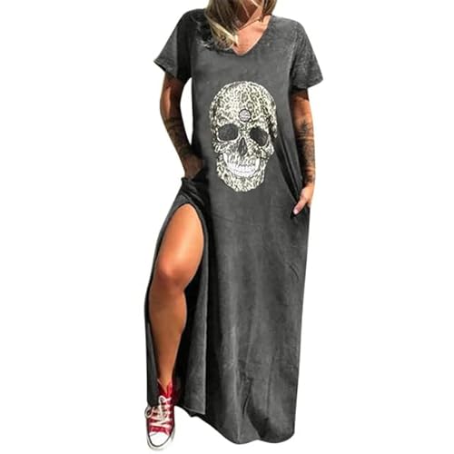 NJUDE Y2k kläder dödskalle tryck klänningar för kvinnor gotisk lång bohemisk klänning damer vardaglig kortärmad t-shirt klänningar gotisk