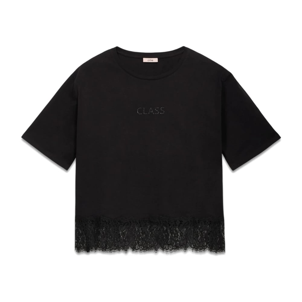 Oltre, Toppar , Dam, S, Bomull, T-shirt med spets och applikation med bokstäver