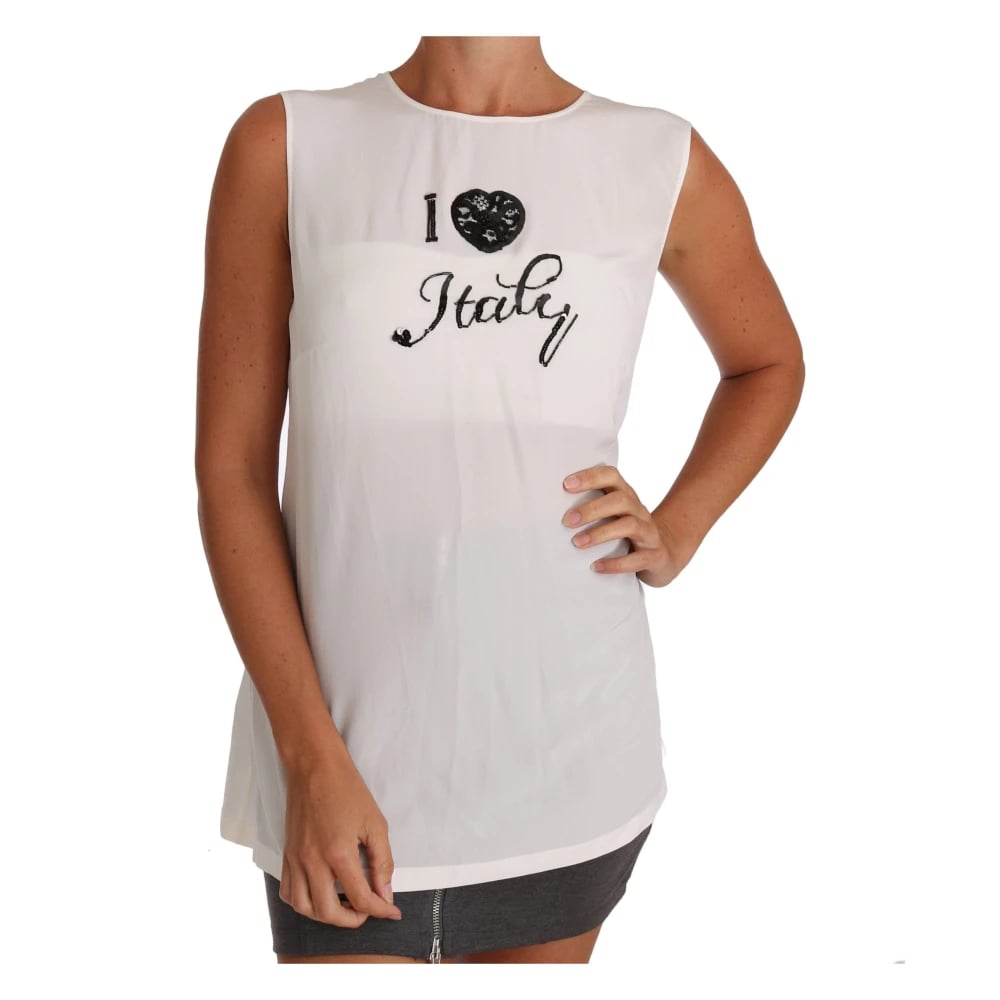 Dolce & Gabbana, Toppar , Dam, L, Paljetter, Italiensk Siden Cami T-shirt med Spets och Paljetter Broderi