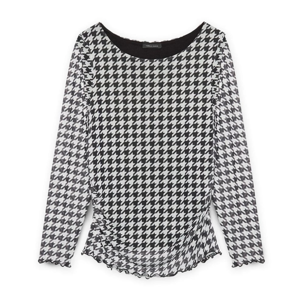 Fiorella Rubino, Blusar & Skjortor , Dam, L, Polyester, Tulle T-shirt med houndstooth-mönster