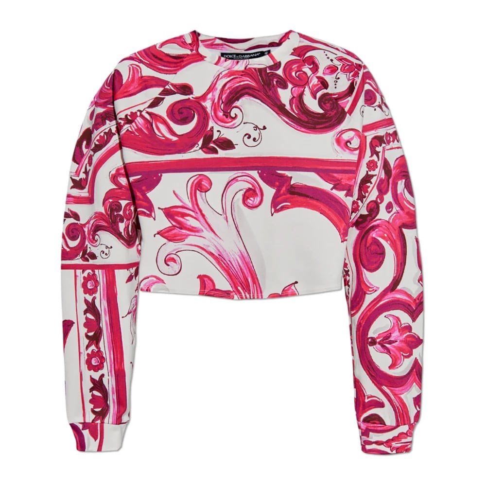 Dolce & Gabbana, Toppar , Dam, XS, Bomull, Kort T-shirt med Majolica mönster