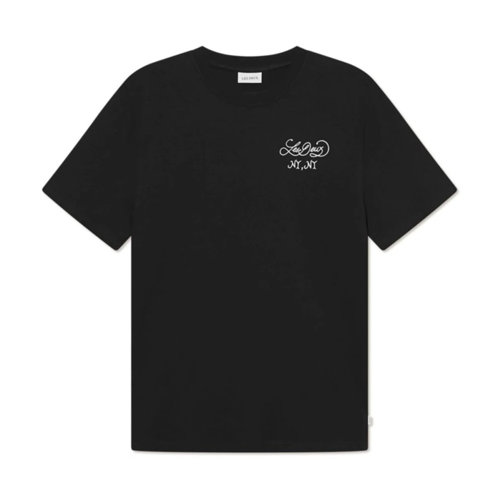 Les Deux, Toppar , Herr, L, Bomull, Kortärmad Rund Hals T-shirt med Flocked Mönster