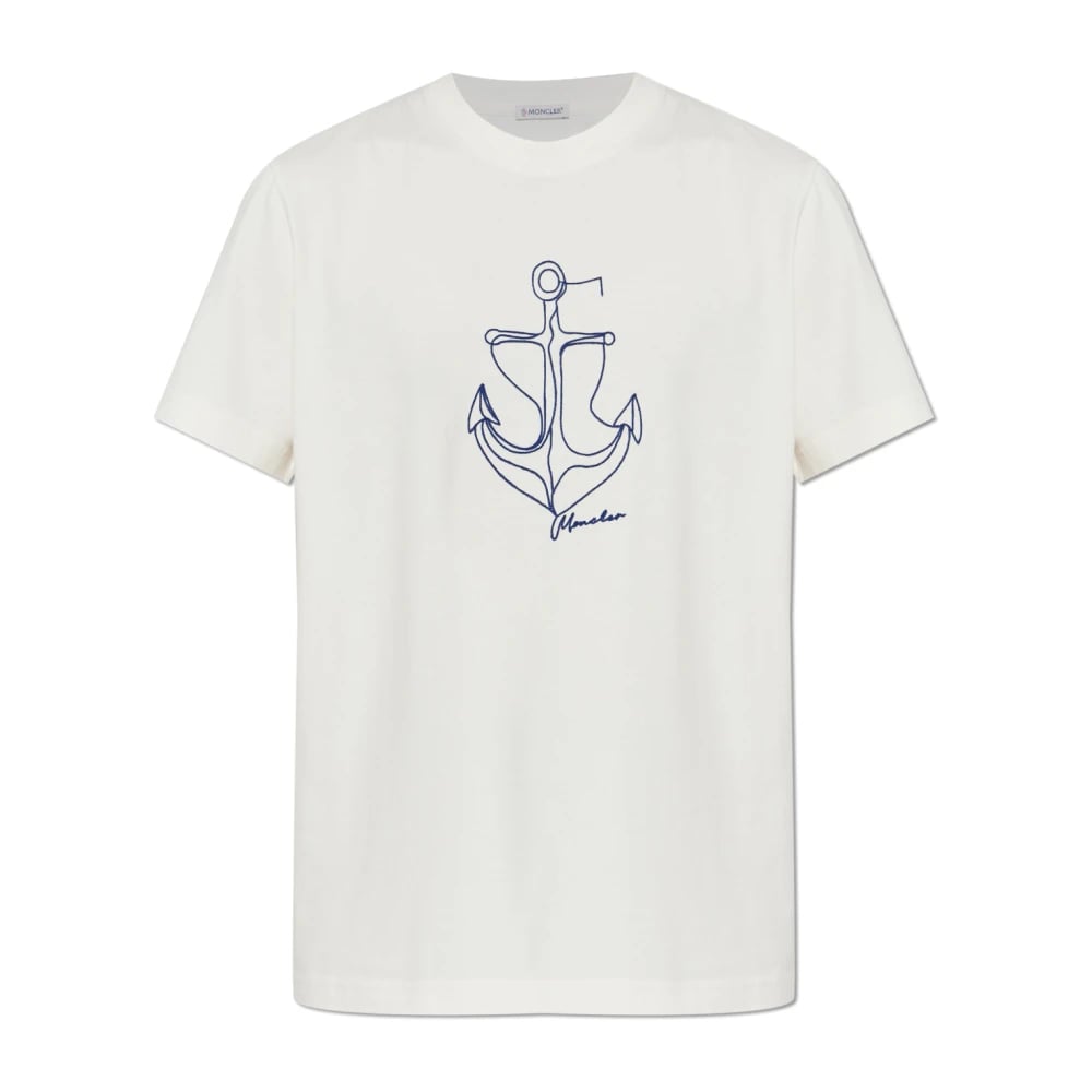 Moncler, Toppar , Herr, XL, Bomull, T-shirt med broderat mönster