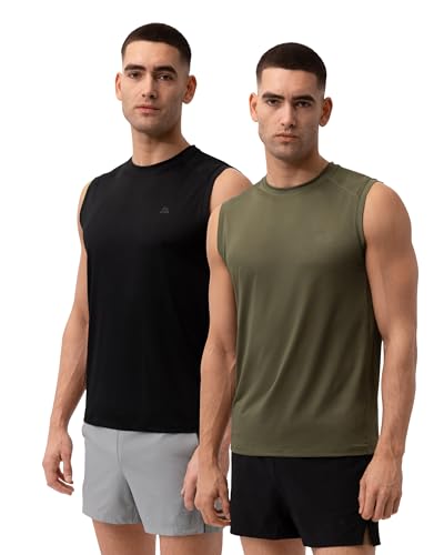 DANISH ENDURANCE linne för män, gymlöpning, torr passform herrväst, atletisk ärmlös t-shirt, träningskläder för träning, 1 eller 2-pack, Flerfärgad (1xsvart, 1xoliv) 2-pack, XL