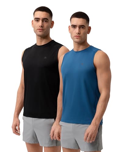 DANISH ENDURANCE linne för män, gymlöpning, torr passform herrväst, atletisk ärmlös t-shirt, träningskläder för träning, 1 eller 2-pack, Flerfärgad (1 x svart, 1 x ljusblå) 2-pack, M