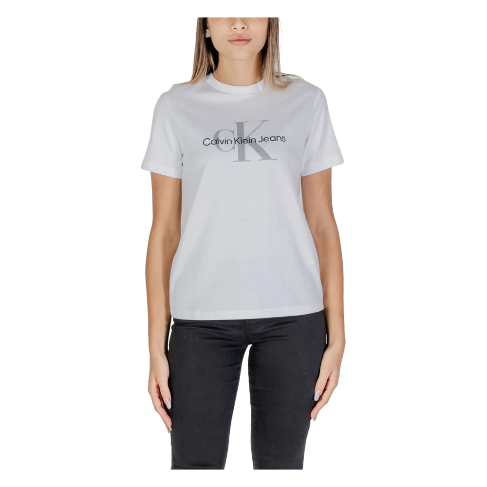 Calvin Klein jeans dam A- INST. Logo Classic TEE SS LV047C912G grafiska t-shirts, vit (lysande vit), S, Vit (lysande vit), S
