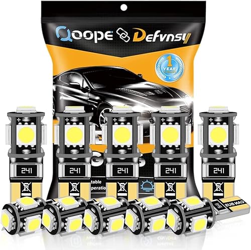 DEFVNSY T10 501 Canbus felfri extremt ljusa vita LED-lampor, 5050 5SMD 2 W bilsidolampor, nummerskyltslampor, led bilinteriörlampor, 12 V 6 000 k, paket med 10