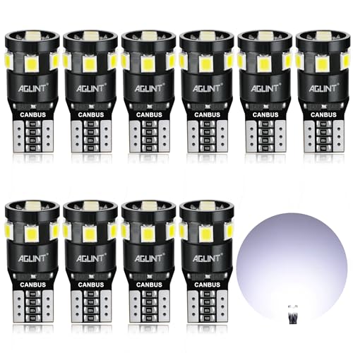 AGLINT T10 W5W Led Lampa CANBUS Felfri 2SMD Jätteljus 194 2825 168 Kil for Bil Interiör kupol karta dörr sidomarkering med tillstånd registreringsskyltsbelysning 6000K Vit(10PCS)