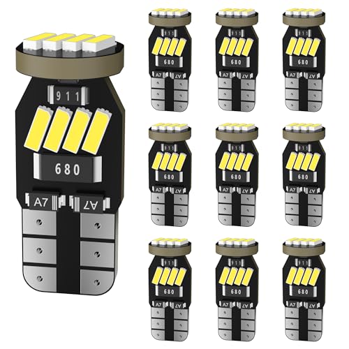 10 st ersättningslampor för bil, W5W glödlampa, W5W T10 12 V, T10 LED-lampa, LED-billampa, LED-billampa, bilinteriörbelysning