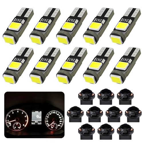 Magnet - Paket med 10 T5 LED-lampor, 1.5W, 150lm, 6500K Pure White - Instrumentpanel- och varningslampor för bil/motorcykel