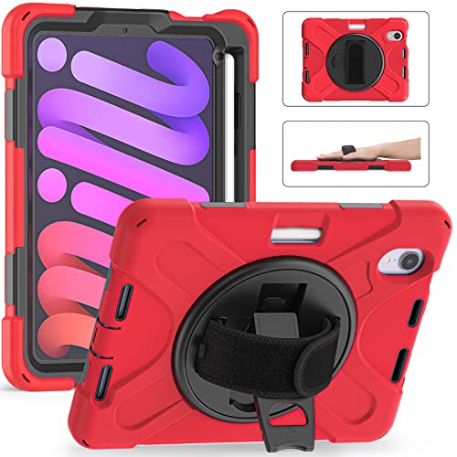 Samsung Galaxy Tab A8 10,5 tum fodral 2022 SM-X200/X205/X207, [barnsäker] Ambison helkroppsskyddsfodral med 9H härdat glas skärmskydd, 360° roterbart ställ och handrem