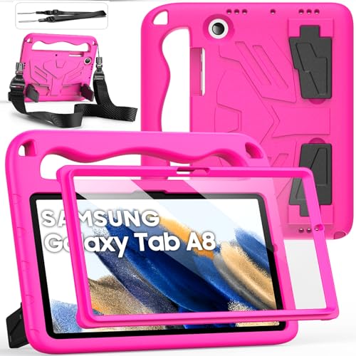 DUZZONA Barnfodral för Samsung Galaxy Tab A8 10,5 tum 2022 (SM-X200/X205/X207) – lätt vikt, stötsäker, skyddande barnfodral med inbyggt skärmskydd och axelrem, rosa rosa
