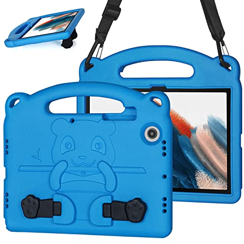 Samsung Galaxy Tab A8 10,5 Tum 2022 (SM-X200/X205/X207) Fodral, Slitstarkt Stötsäkert för Barn, Multi-Angle View Stand Med Axelrem, Blå