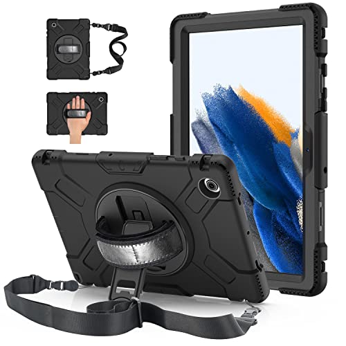 ZtotopCases Fodral för Samsung Galaxy Tab A8 10,5 tum 2021, bärbart, 360 graders vridbart stativ och dubbelt lager stötsäkert helskyddsfodral med axelrem för Samsung Galaxy Tab A8 2021 skyddsfodral,
