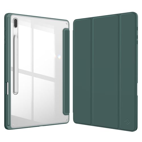 FINTIE Fodral för Samsung Galaxy Tab S8 Plus 2022 / Tab S7 FE 2021/Tab S7 Plus 2020 12,4 tum - klart genomskinligt fodral för stötskydd, automatisk sömn/väckarklocka, skogsgrön