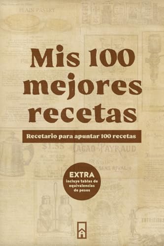 Mis 100 mejores recetas: recetario para apuntar 100 recetas: Incluye tablas de equivalencias de pesos