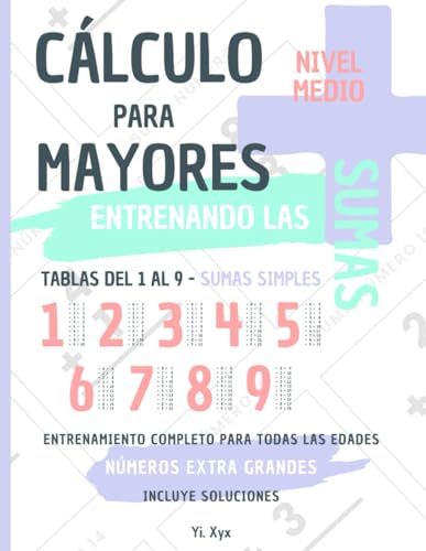 CÁLCULO PARA MAYORES - ENTRENANDO LAS SUMAS - TABLAS DEL 1 AL 9 - SUMAS SIMPLES - NIVEL MEDIO - INCLUYE SOLUCIONES RECORTABLES: NÚMEROS EXTRA GRANDES - ENTRENAMIENTO COMPLETO PARA TODAS LAS EDADES