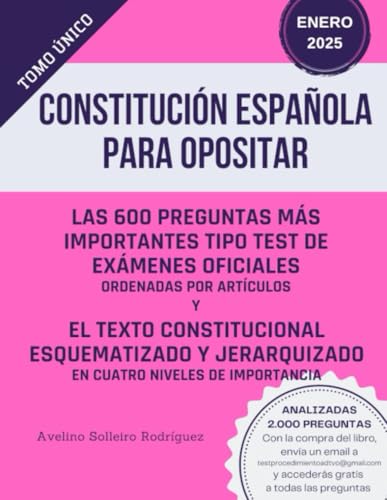 CONSTITUCIÓN ESPAÑOLA PARA OPOSITAR: Preguntas tipo test de exámenes oficiales y el texto consolidado en tablas, esquematizado y jerarquizado en cuatro niveles de importancia