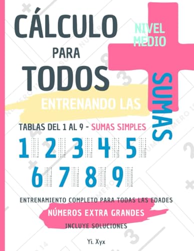 CÁLCULO PARA TODOS - ENTRENANDO LAS SUMAS - TABLAS DEL 1 AL 9 - SUMAS SIMPLES - NIVEL MEDIO - INCLUYE SOLUCIONES RECORTABLES: NÚMEROS EXTRA GRANDES - ENTRENAMIENTO COMPLETO PARA TODAS LAS EDADES