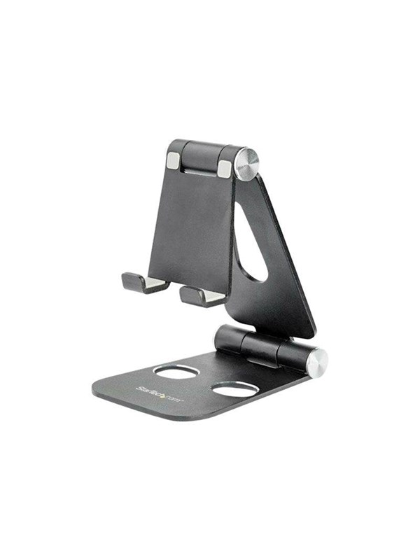 StarTech.com Phone and Tablet Stand - Foldable - Multi Angle - Aluminum - Black - Adjustable Smartphone / Tablet Stand - desktop stand