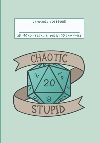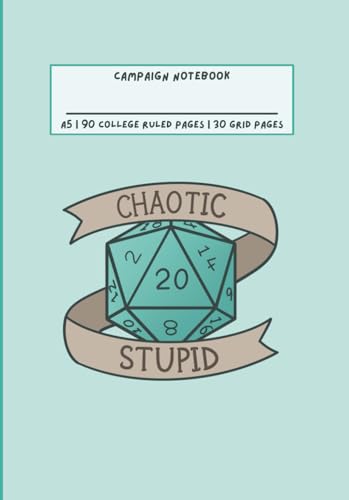 Fantasy Roleplaying Game Campaign Notebook Mint D20 Chaotic Stupid Cover A5: RPG Journal for Tabletop Adventures | 90 College Ruled Pages & 30 Grid Pages | For Players & Game Masters