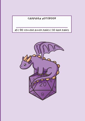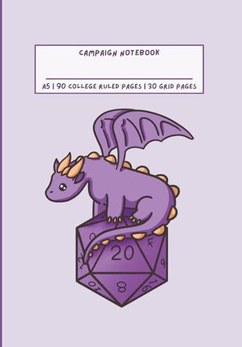 Fantasy Roleplaying Game Campaign Notebook Purple D20 Dragon Cover A5: RPG Journal for Tabletop Adventures | 90 College Ruled Pages & 30 Grid Pages | For Players & Game Masters