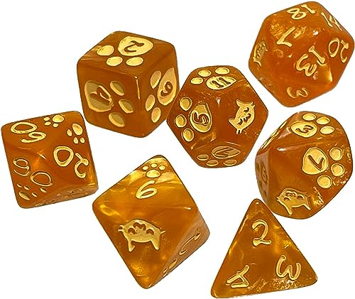 Kitten Polyhedral Dice Set Orange | Custom Dice, Perfect for use with Steve Jackson Games, DND, RPGs, Tabletop Games, and Role-Playing Adventures