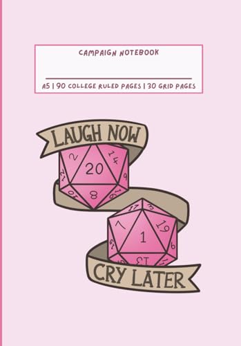 Fantasy Roleplaying Game Campaign Notebook Pink D20 Cover A5: RPG Journal for Tabletop Adventures | 90 College Ruled Pages & 30 Grid Pages | For Players & Game Masters
