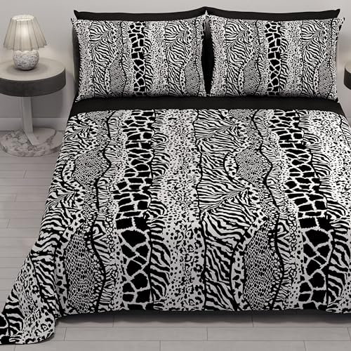 PETTI Artigiani Italiani - Sommaröverkast för dubbelsäng, 260 x 270 cm, 100 g/m², dubbeltäcke, vår, lätt täcke, svart animalier, 100% tillverkad i Italien