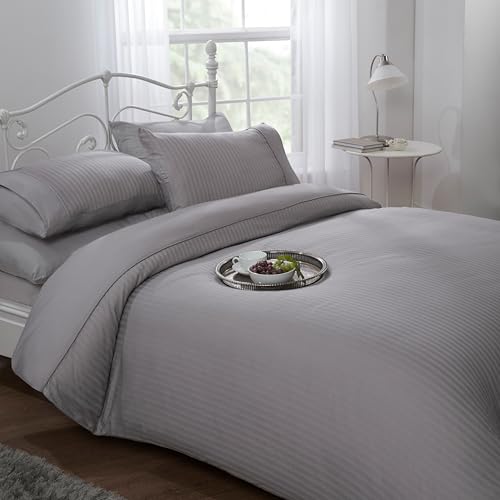 Emma Barclay Ritz 300 trådtäthet satin randigt täcke set i silver – dubbelsäng